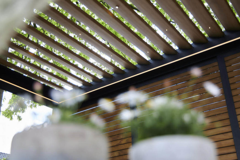 Sous une pergola ou un voile d’ombrage, la vie prend place pour devenir confortable.